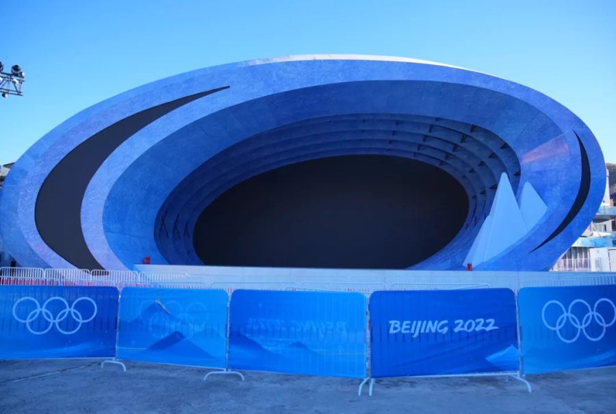 这是2021年12月28日拍摄的张家口奥林匹克颁奖广场内已落成的颁奖舞台。新华社记者 杨世尧摄