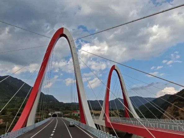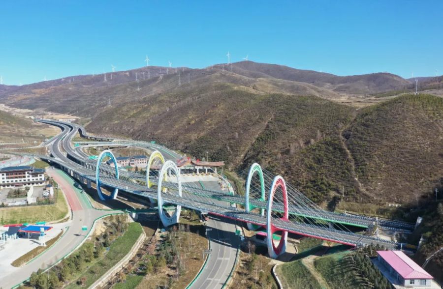 进入延崇高速河北段主线,迎冬奥氛围扑面而来。图为“奥运之门”——杏林堡大桥。(河北省交通运输厅供图)