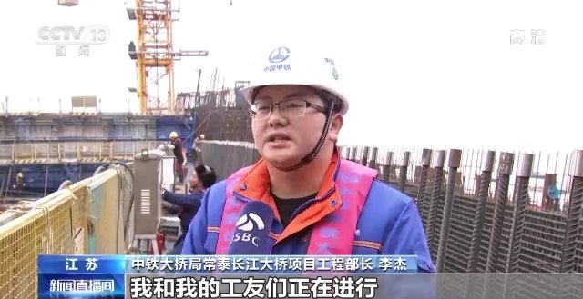 中铁大桥局常泰长江大桥项目工程部长 李杰:我和我的工友们正在进行常泰长江大桥6号主塔钢横梁的施工,预计今年年底主塔施工将完成30节至中塔柱合龙。