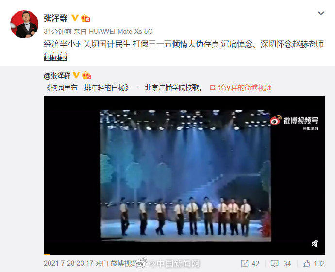 据著名主持人张泽群消息,央视财经频道主持人赵赫去世。10日晚,张泽群在微博发文悼念:“经济半小时关切国计民生,打假三一五倾情去伪存真,沉痛悼念、深切怀念赵赫老师。”