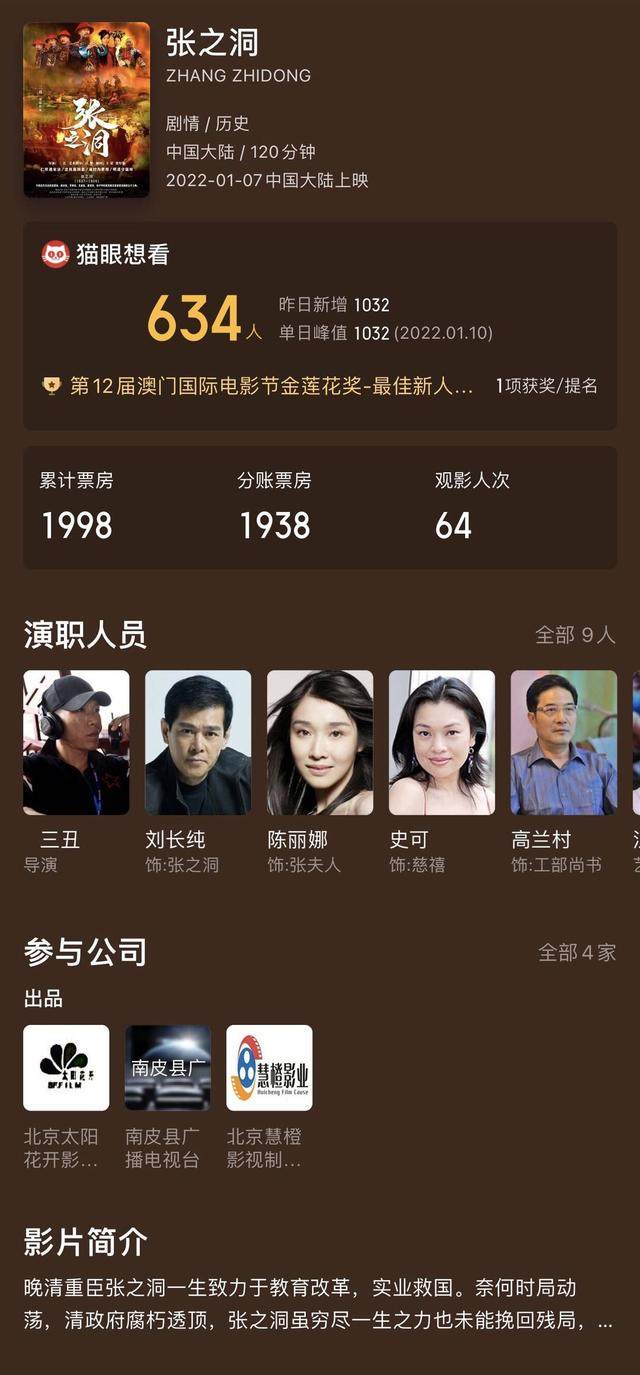 随后,记者联系了另一家参与制作出品的北京慧橙影视制作有限公司,工作人员的言语中透露出无奈。这名工作人员说自己昨天睡得很晚,因为《张之洞》是历史题材得电影,“排片有问题,我们没办法,公司也没办法”。