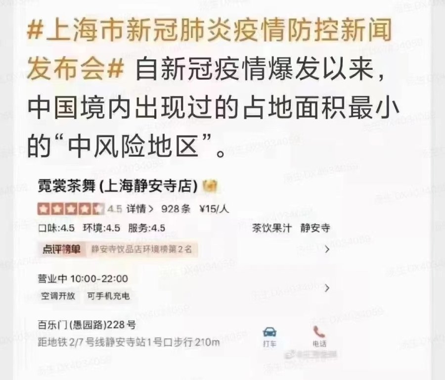 记者了解到,新增的中风险地区静安寺街道愚园路228号实际上是一家奶茶店,面积仅20余平方米。不少网友表示,这是全球最小“风险区”。