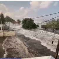 手机视频显示部分停车场被海水淹没,部分车辆被海水冲走。