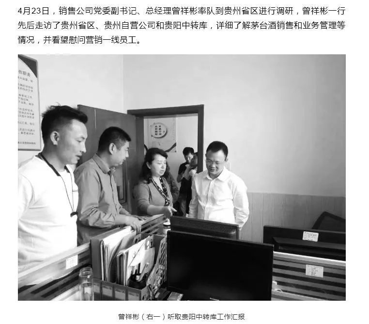 启信宝信息显示,去年5月,曾祥彬开始任茅台酒销售公司总经理职务。