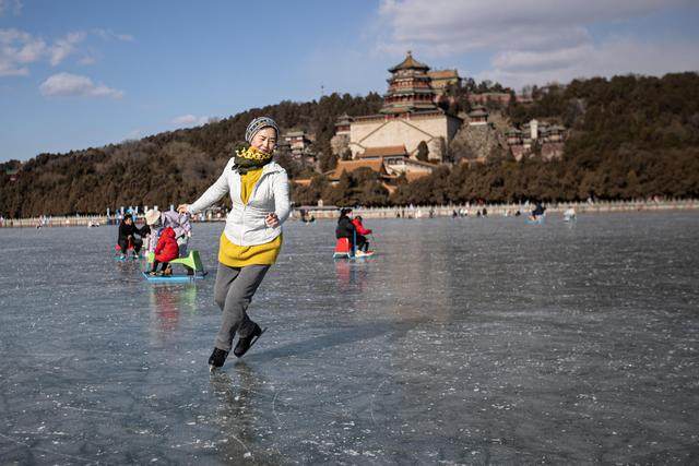 火红的灯笼高高挂,冰上的人儿笑哈哈。颐和园的冰面上,人们坐着冰车在佛香阁前驰骋,冰刀划过,扬起的冰屑随风散落在昆明湖的冰面,如铃一般,奏出一段美妙的冬日乐章。