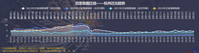 此外,杭州近几日迁徙规模指数呈现上升趋势,1月24日迁徙规模指数为7.810,1月25日为9.266,26日为9.862,27日为11.158。