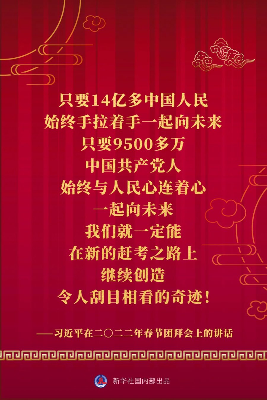 中共中央、国务院30日上午在人民大会堂举行2022年春节团拜会。中共中央总书记、国家主席、中央军委主席习近平发表讲话。一起看金句。
