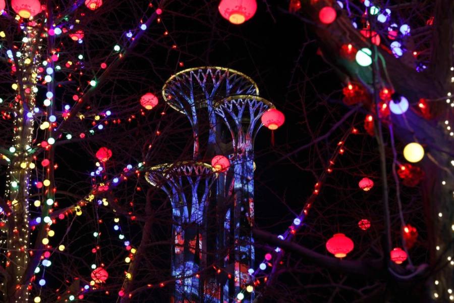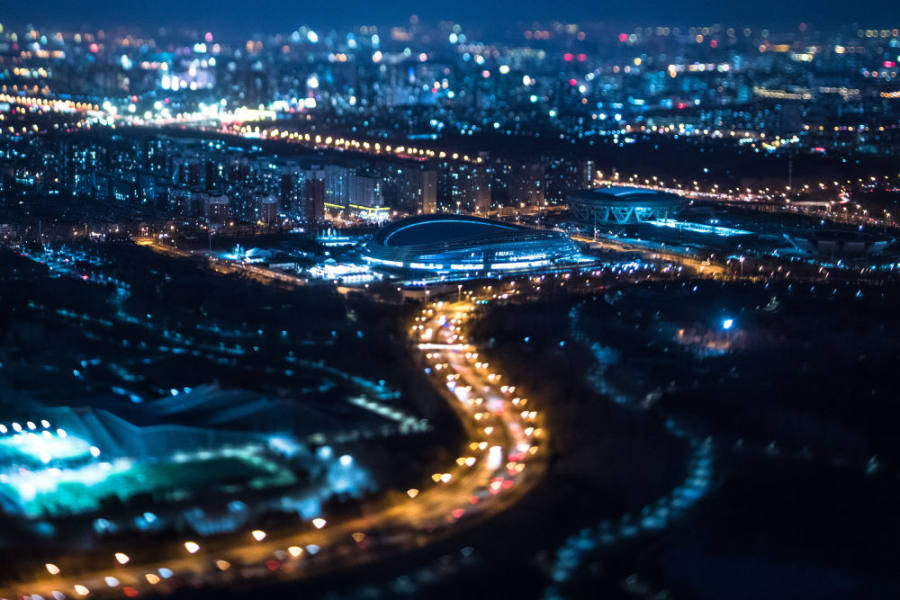 各个场馆点亮华灯,流光溢彩
