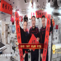 1月31日,农历除夕,神舟十三号航天员在遥远的太空专门发来视频,向祖国和人民送上祝福。拿着对联的指令长翟志刚说:“祝大家新春快乐,身体健康,万事如意。”身着喜庆服装的王亚平祝全国小朋友们“生龙活虎、茁壮成长”,祝福我们伟大的祖国“福虎生旺、繁荣富强”。叶光富手持“福”字祝愿全国人民“新春愉快、阖家幸福”。