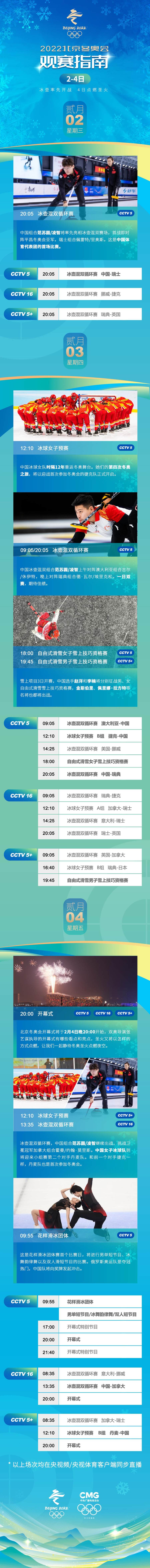 北京冬奥会2-4日观赛指南:今日点燃圣火,冰壶率先开战