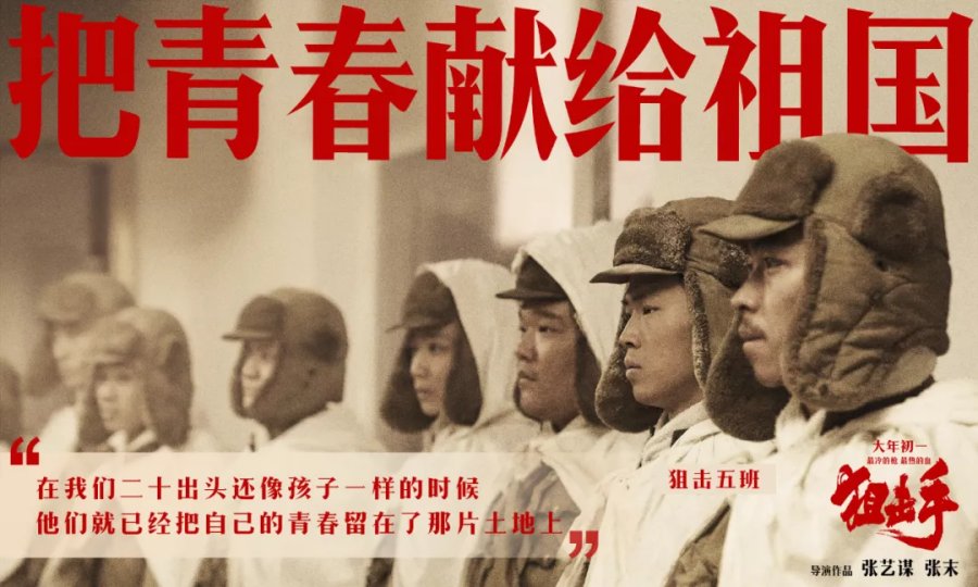 在张艺谋看来,伟大的战争、宏阔的场面,都离不开无数个体的热血与奋战,所以在影片中选择聚焦个人的命运、蜕变、成长,以及他们人生经历的方方面面。此外,狙击手题材是战争影片中一种较为独特的影片类型,选择这一表达方向可以让抗美援朝题材影片拍出新意。