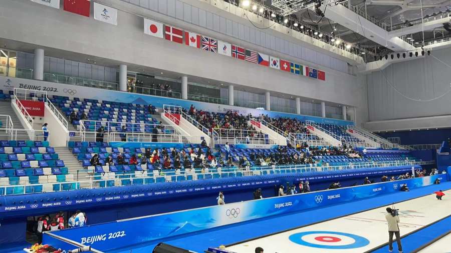 2月2日晚,北京冬奥会冰壶比赛在“冰立方”率先开赛。通过直播镜头,观众席上五环色系的口罩让人忍不住多看一眼。记者从承担北京冬奥会比赛场馆观众口罩生产任务的北京纳通科技集团获悉,这些口罩是票务与观众组织组给观众专门配备的特制医用防护N95口罩,有个好听的名字——“韵律山丘”。