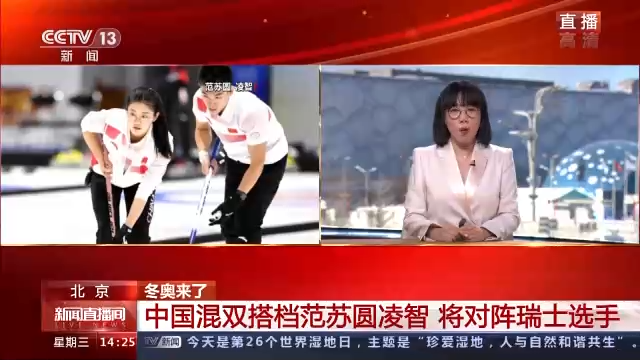 2日晚8时05分,中国混双搭档范苏圆/凌智对阵来自瑞士的平昌冬奥会银牌得主。