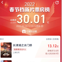 2022春节档新片总票房破30亿