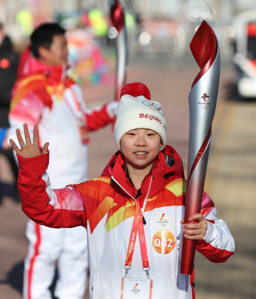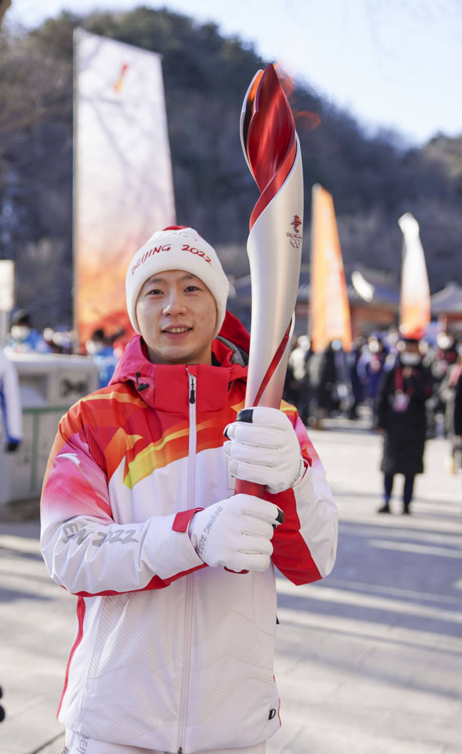 ↑火炬手管晨辰在火炬传递中。新华社记者 张浩波 摄
