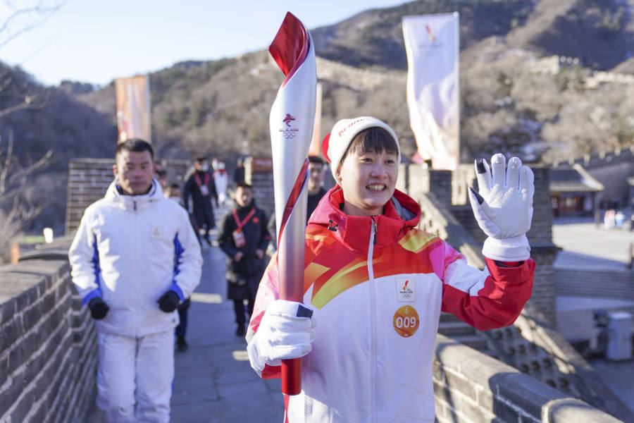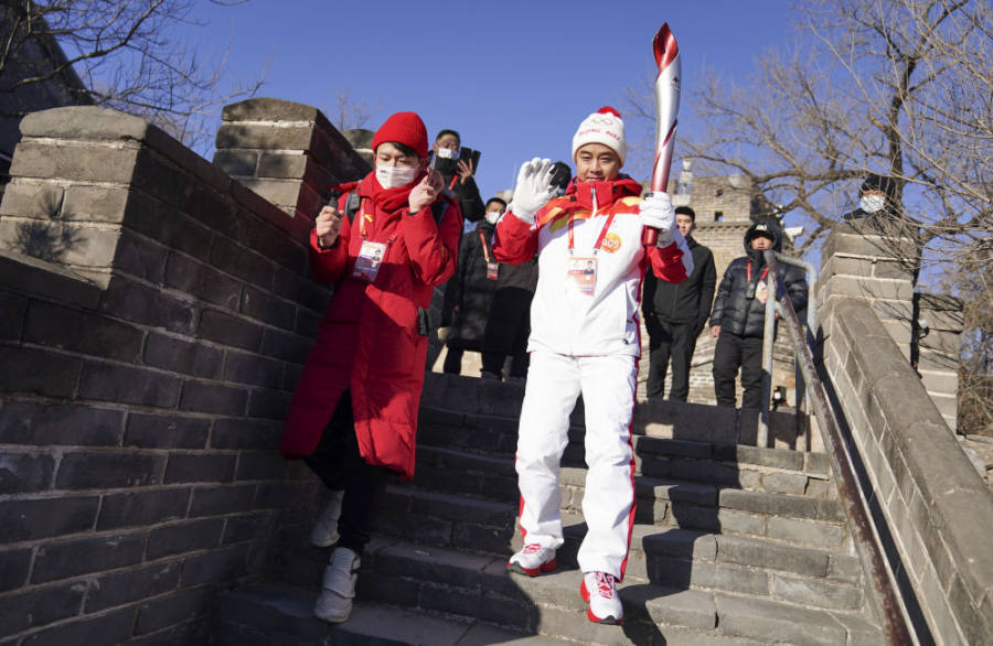 2月3日上午,北京冬奥会火炬在八达岭传递,传递距离共1.47公里,多名夏奥冠军参与传递。