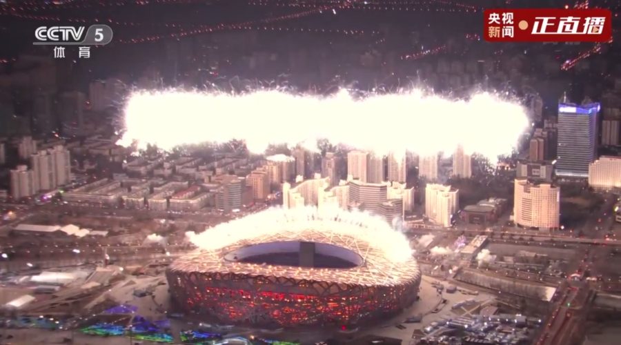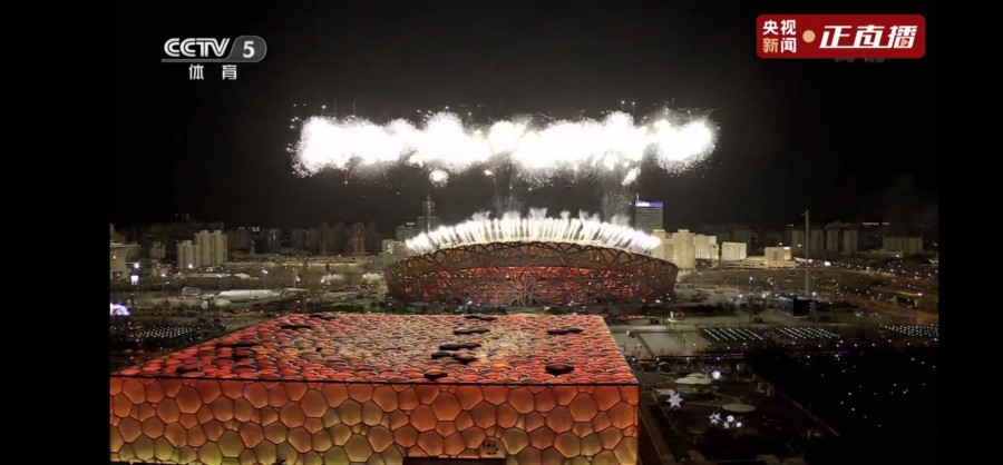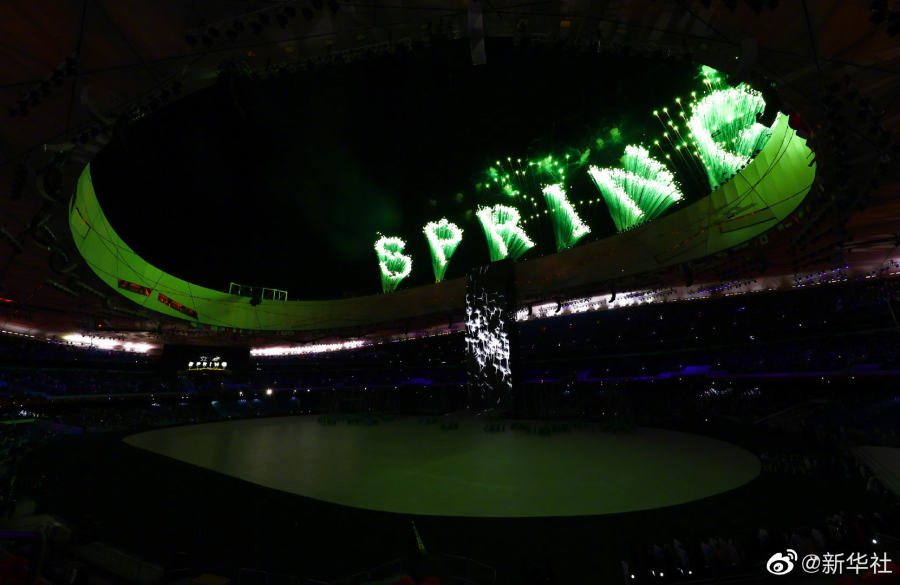 最后,焰火再次在鸟巢上空绽放,打出“立春”和英语春天“SPRING”字样,带给人们春的希望。