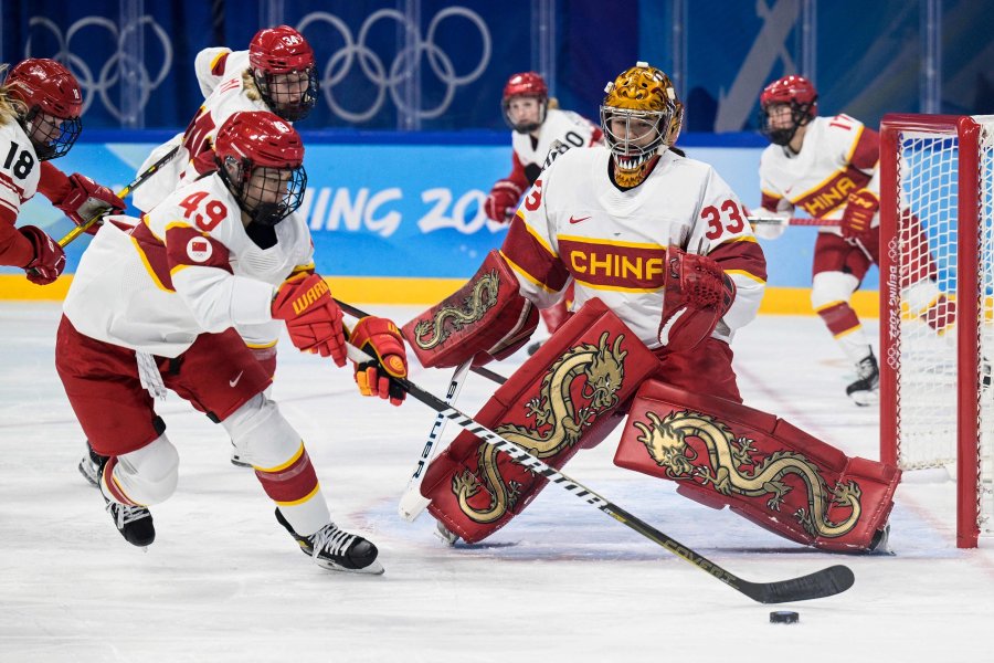 黑色冰球划过白色冰面,贯穿大半个冰球场,钻进丹麦队无人把守的大门,中国女子冰球队3:1领先!