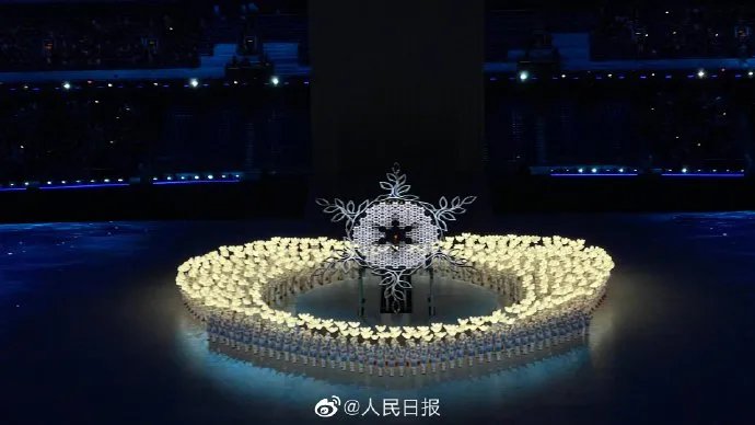现场,最后一棒火炬留在大雪花中心,继续燃烧,这就是我们的主火炬。视频据@北京2022年冬奥会