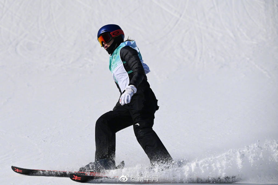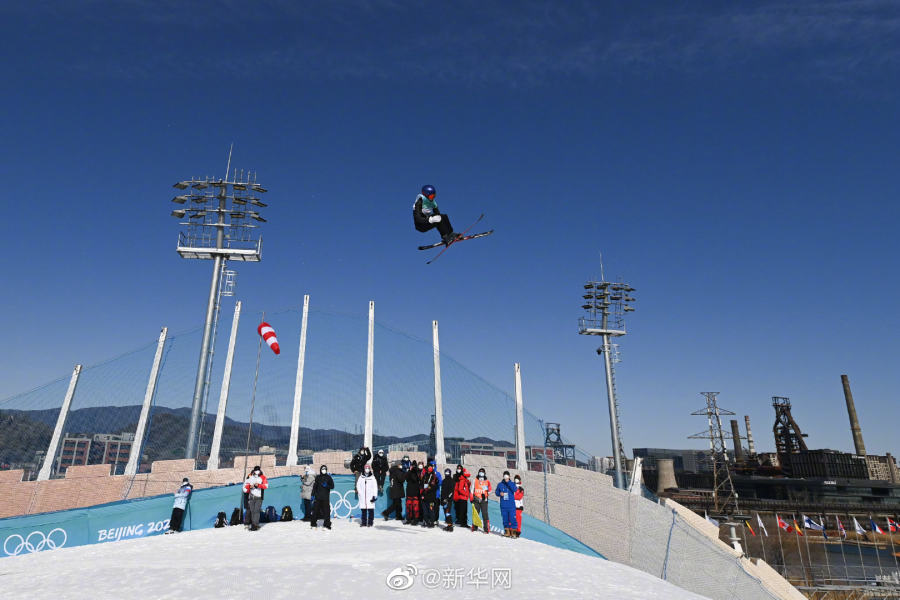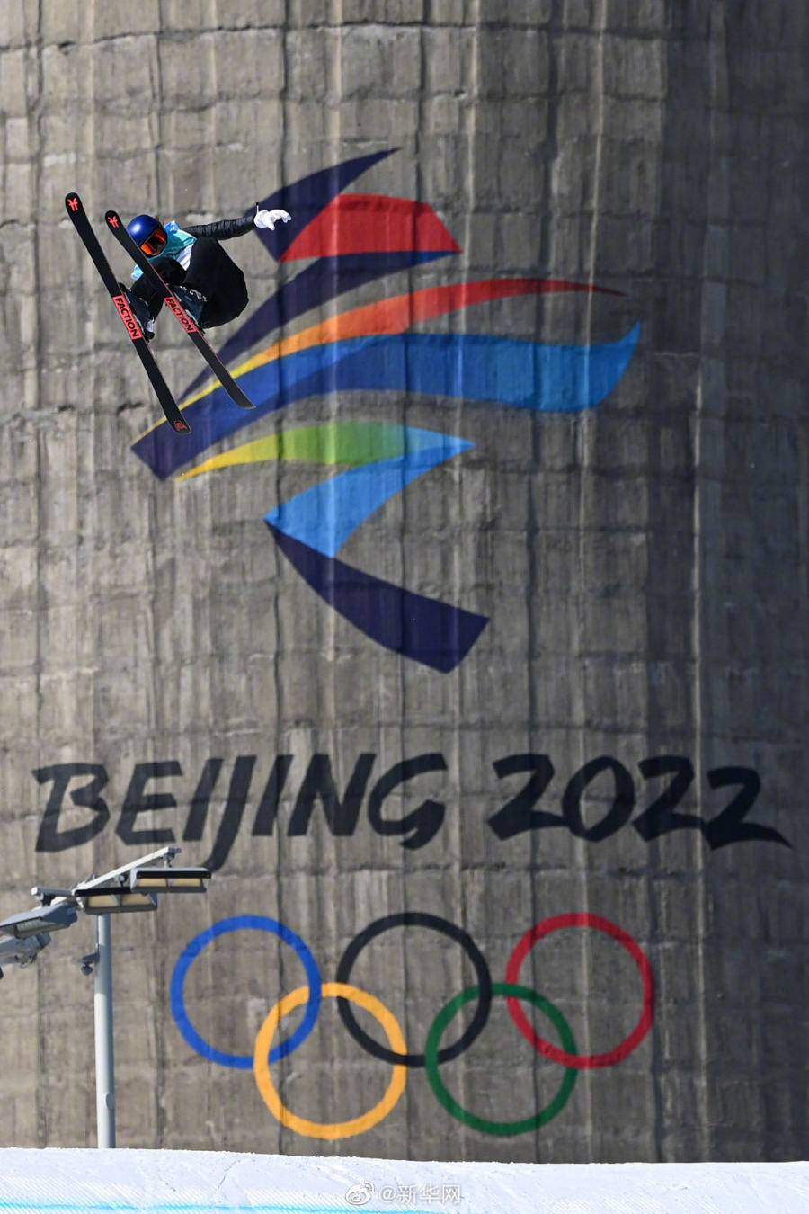 2月5日,中国选手谷爱凌在北京首钢滑雪大跳台进行赛前训练,备战即将开赛的自由式滑雪大跳台项目。