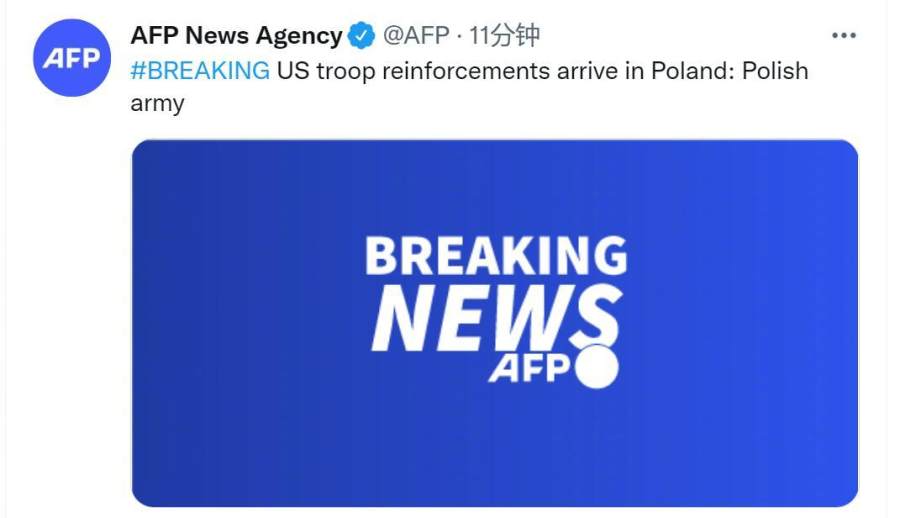 法新社刚刚消息,波兰军方表示,作为北约增派部队的一部分,一队美军士兵已抵达波兰。