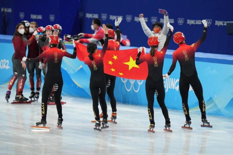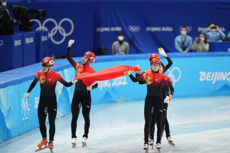在5日晚刚刚结束的北京冬奥会短道速滑男女混合接力决赛上,在全场观众的助威声中,中国队曲春雨、范可新、武大靖、任子威不负众望,携手夺金,这是中国队在本届冬奥会的首金,也是短道速滑项目历史上第一枚男女混合接力奥运金牌。