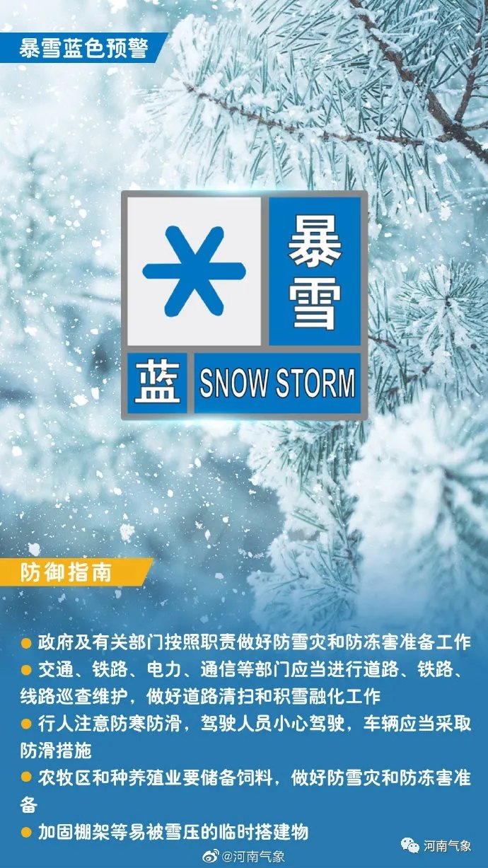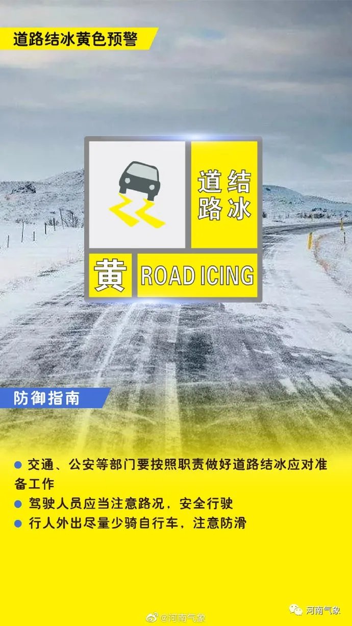 河南省气象台发布道路结冰暴雪双预警