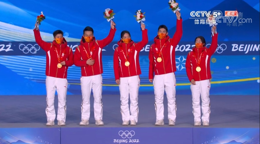 2月6日20时,北京冬奥会短道速滑混合团体接力项目在北京颁奖广场进行颁奖仪式。现场还进行升国旗和奏国歌仪式。夺得该项目金牌的中国队获颁金牌!