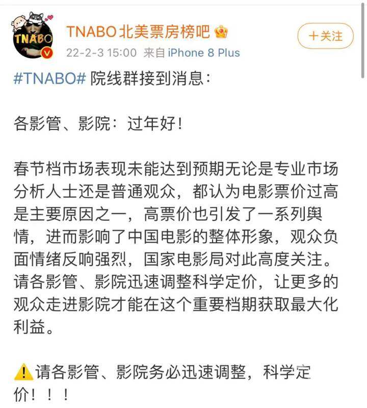 其实早在2月3日,就有红V爆料,全国院线群收到了“调整科学定价,让更多的观众走进影院”的建议。不过,结算价格并不等于你实际能买到的电影票价格。虽说电影票的定价由电影的制片方、发行方与影院(院线)商议定价,并签订合约,但定的结算价格是最低票价,并不是均价,也不是统一价。只是按照此协议,影院不能以低于这个价格卖票。