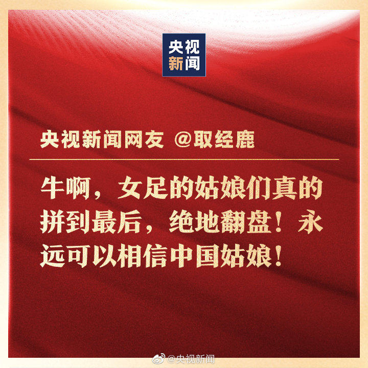 今天是春节假期后的第一个工作日。昨夜,我们为中国女足热泪盈眶,今后,我们向女足姑娘学习致敬!