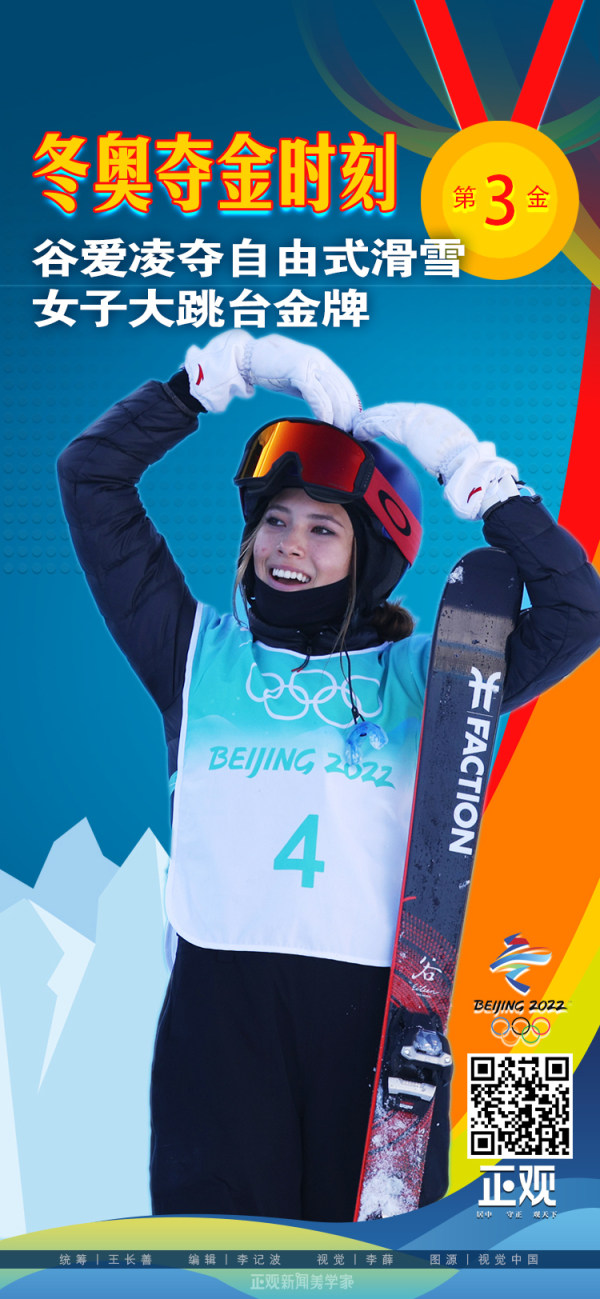 2月8日上午,在北京冬奥会自由式滑雪女子大跳台决赛中,中国选手谷爱凌夺得金牌。这是本届北京冬奥会中国队拿下的第三金,也是第一块雪上项目金牌,距上一块中国雪上金牌已有16年。