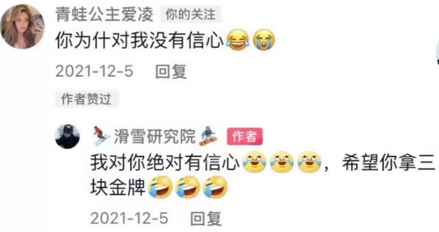 面对压力,谷爱凌喜欢迎面而上。北京冬奥会开始后,谷爱凌将参加三个项目的角逐,关注度高、项目难度大,一般人在这个时候都会低调,一位体育博主也替她“降温”,预测她的三枚奖牌,结果谷爱凌亲自上线回复:“你为什么对我没有信心?”