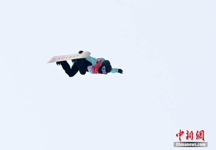 2月9日,北京2022年冬奥会单板滑雪女子U型场地技巧资格赛在张家口云顶滑雪公园进行,中国选手蔡雪桐排名第三,晋级决赛。图为蔡雪桐比赛中。 中新社记者 翟羽佳 摄