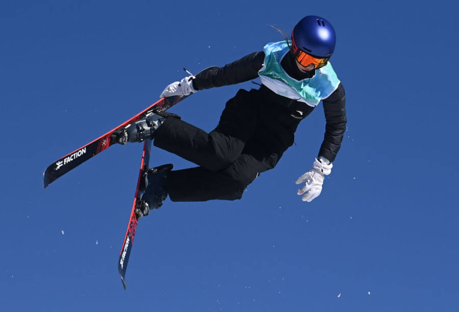 2月8日,中国选手谷爱凌在北京2022年冬奥会自由式滑雪女子大跳台决赛中。新华社记者黄宗治摄