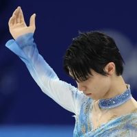 今天上午,记者在现场看到羽生结弦身着一身黑色衣服在首都体育馆进行了赛前热身训练。