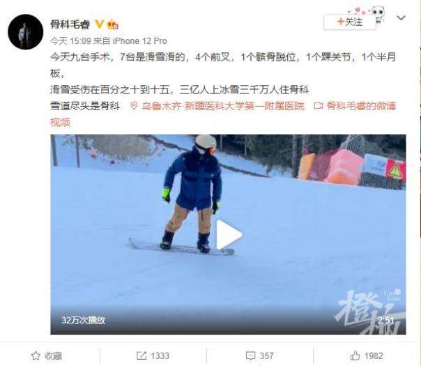 9日,微博上就有骨科医生发文说:今天九台手术,7台是滑雪滑的,4个前叉(前交叉韧带),1个髌骨脱位,1个踝关节,1个半月板。