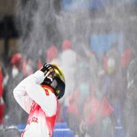 2月10日,中国队选手贾宗洋在比赛中失误后。 新华社