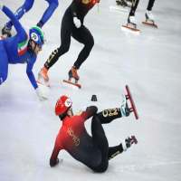 11日晚,短道速滑男子5000米接力半决赛,在还剩11圈时(一共45圈),中国选手李文龙与加拿大选手冰刀发生碰撞后摔倒,但中国队仍坚持完成了比赛,最终中国队被直接判进A组决赛。