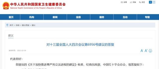 卫健委回应“推进尊严死立法建议”:存争议,将深入研究