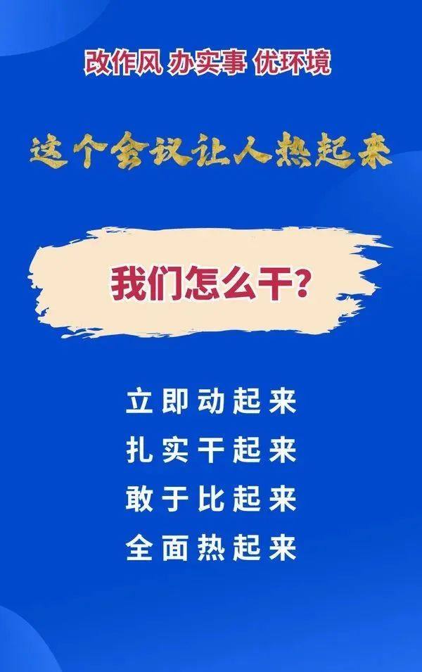 凌云说,一要立即动起来。把工作提速、服务提质传导到每个人,把马上就办、办就办好落实到各环节。马上走访,围绕就业、教育、医疗、生态环保等群众关注问题,紧扣惠企政策落地等企业关心问题,组织实施“新春访万企、助力解难题”活动,全面开展走村入户访企大走访,摸排情况、发现问题、跟踪督办,防止走访变走秀、落实变落空。马上排查,全面排查民生实事、生态环保、营商环境等方面问题,确保不留死角、不留盲区。马上整改,设定时限量化指标,清单化、闭环式推进整改,公开化接受社会监督。建立“周报告、月调度、季通报”机制,将改进作风和优化营商环境工作纳入政治监督、巡视巡察和干部绩效考核评价体系,以刚性制度保障落地落实。