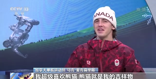 加拿大单板运动员 马克·麦克莫里斯:我超级喜欢熊猫,熊猫就是我的吉祥物,它是最可爱的动物,我希望人们看到它就会露出微笑,感到快乐。