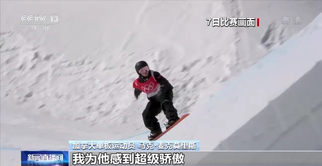 在本届冬奥会单板滑雪男子坡面障碍技巧决赛中,获得铜牌的加拿大单板运动员马克·麦克莫里斯在采访中表示,中国的比赛场地很棒,比赛气氛很好,给他留下了很愉快的经历,“在这个场地滑行充满乐趣,雪道风格很棒,U型场地也十分出色,赛场上的气氛特别好,这是一届令人愉快的冬奥会。”