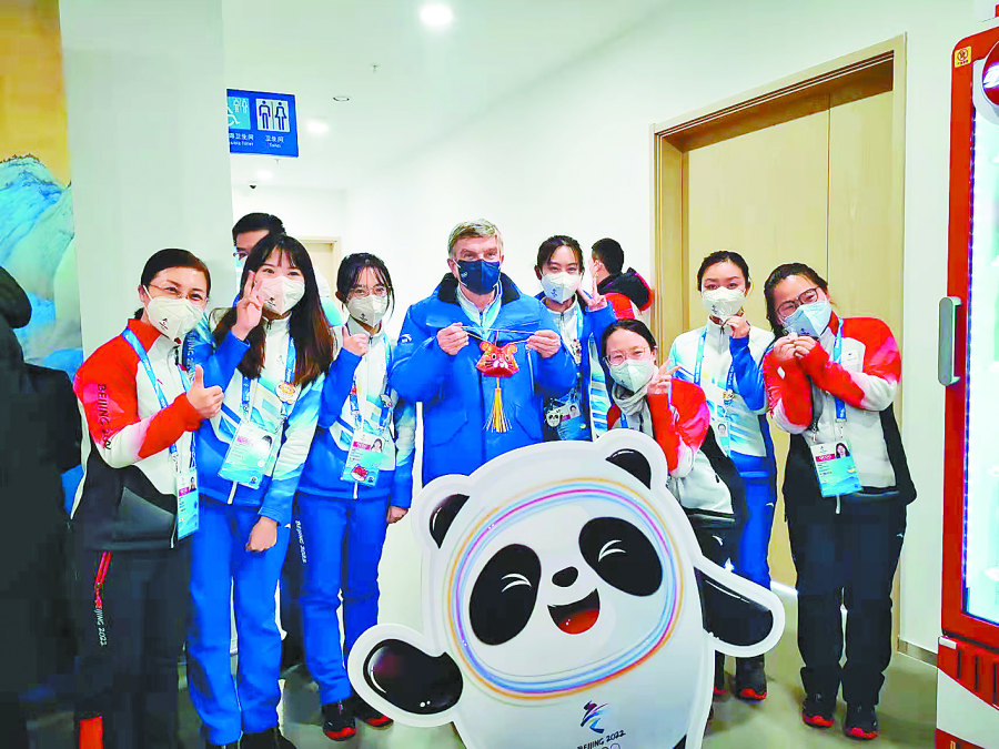 2月11日,国际奥委会主席巴赫到延庆冬奥村考察,参观了广场区、休战墙、冰长城、奥运女神雕塑、文化中国展示区等,并在运动员餐厅用午餐。延庆冬奥村村长程红通过视频会见了巴赫主席。“如果我在您的村子里待上3天,我会再长10斤,这里的餐食太好吃了。”巴赫直言。