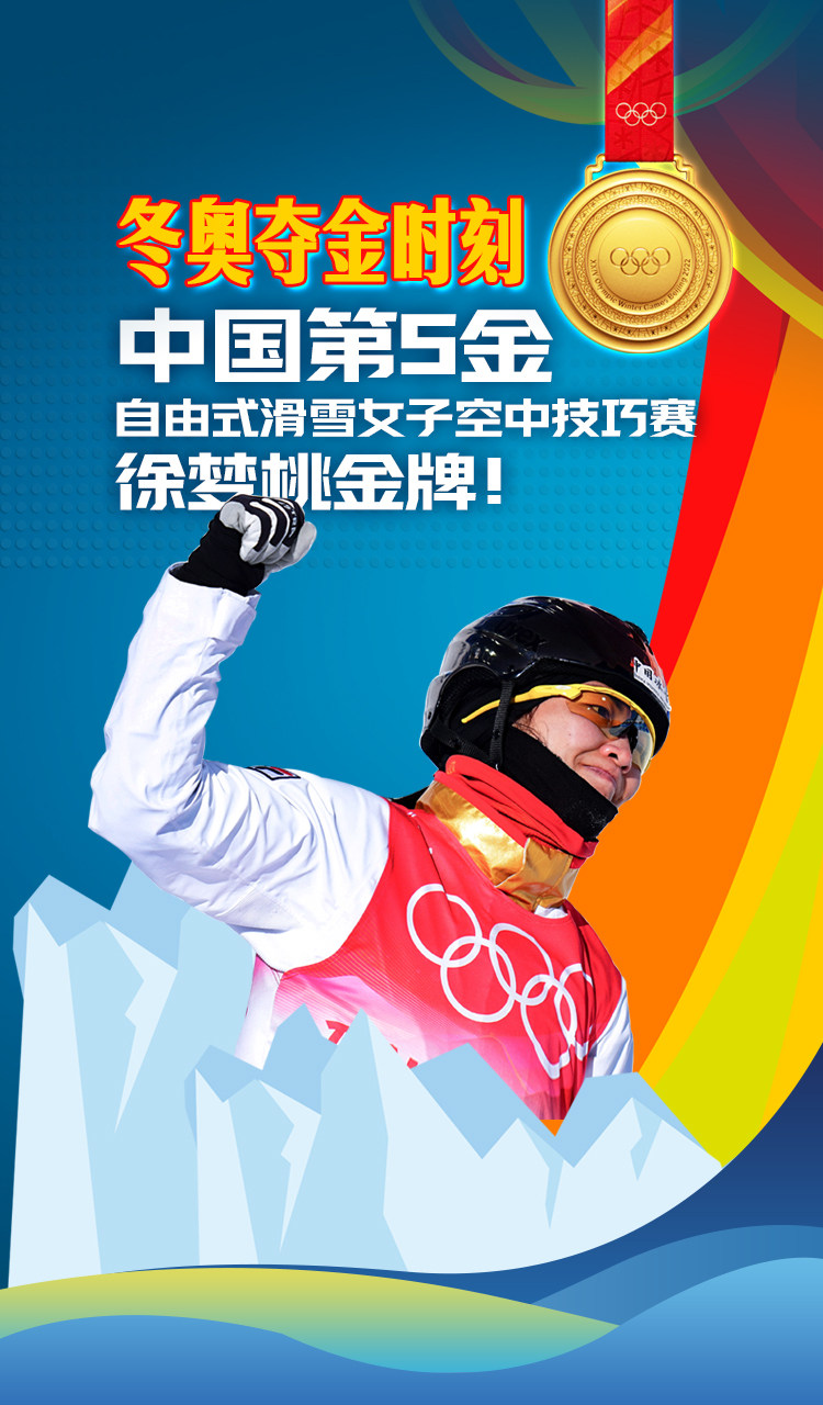 北京冬奥会自由式滑雪女子空中技巧决赛最终轮一跳定胜负。中国队徐梦桃夺得金牌。