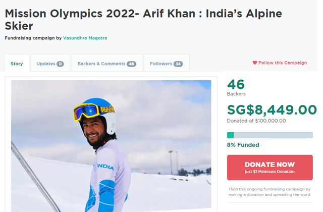 怎么办?他后来在网上启动了一项众筹计划,试图通过这种方式筹足资金参加资格赛,但最后因为筹资金额差了15万卢比(约合1.26万元人民币)未能成行,错失很可能到手的冬奥会入场券,这让他痛心不已。