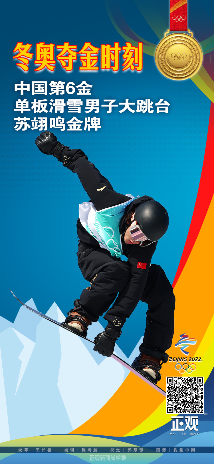 中国第6金!苏翊鸣夺得单板滑雪男子大跳台金牌
