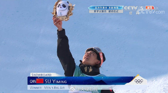 单板滑雪男子大跳台比赛,中国选手苏翊鸣获得冠军。接受采访时他表示,“我知道我父母今天来看比赛,我不能和他们近距离接触,但是我真的很激动。谢谢我的父母,我的教练,我的祖国!”你超棒,为你骄傲!恭喜苏翊鸣18岁最好礼物到手!