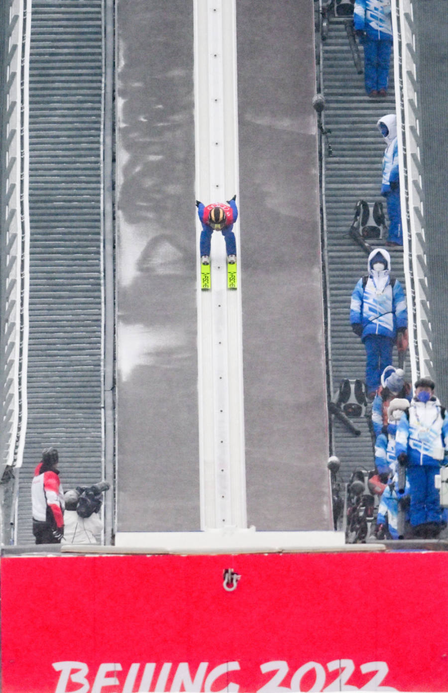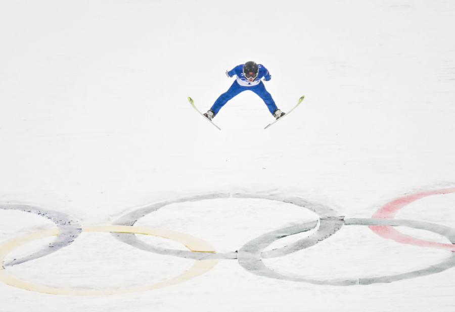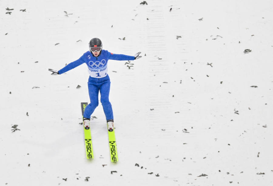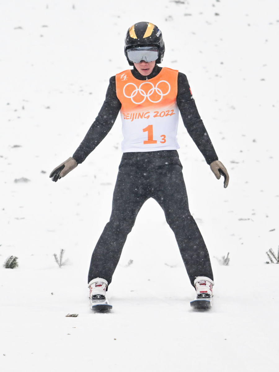 赵嘉文在跳台滑雪比赛中。