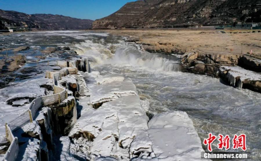 2021年12月,山西吉县黄河壶口瀑布。(无人机照片)中新社发 吕桂明 摄