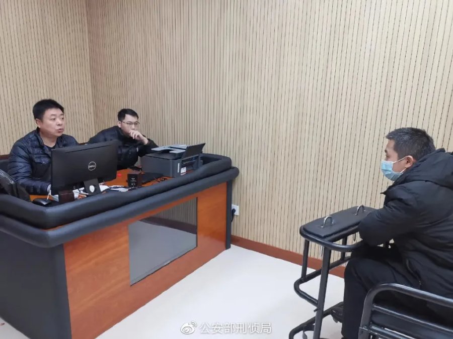 ▲专案组民警正在对犯罪嫌疑人进行讯问。